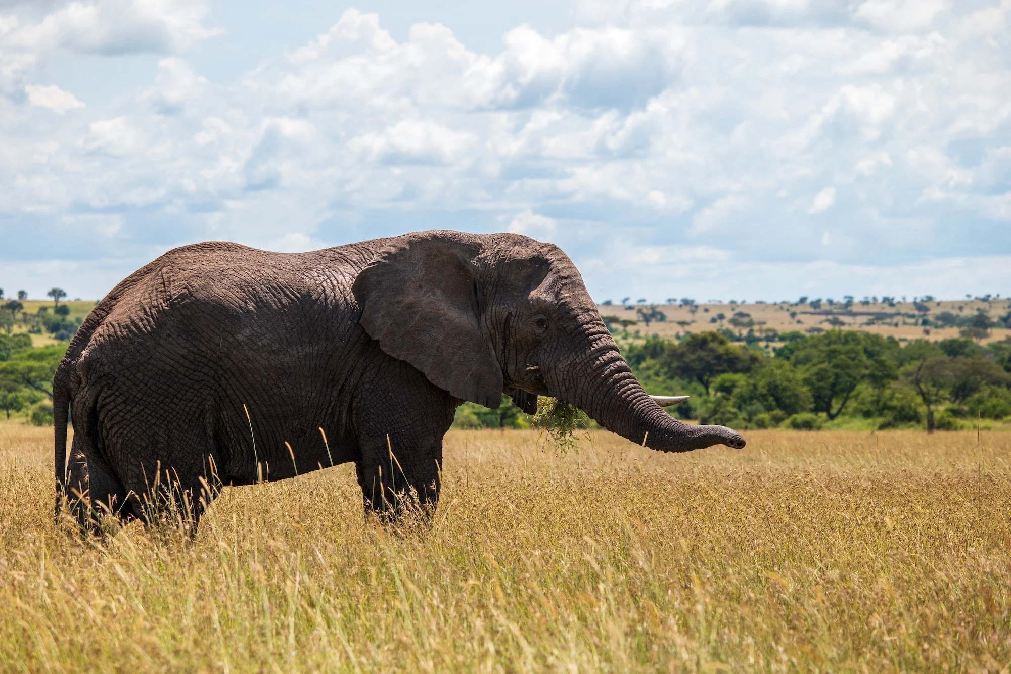 Un point fort de cette journée aura été la rencontre avec un magnifique éléphant solitaire. On le voyait arriver de loin, et on a arrêté la voiture sur sa trajectoire. Par sécurité on a coupé le moteur pour ne faire absolument aucun bruit. On l’a vu s’approcher pendant plusieurs minutes, passer à quelques mètres de nous et repartir tranquillement. Une image forte pour moi après le beau spectacle des girafes la veille !